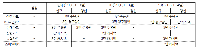 이렇게 간편 결제 회사와 카드사의 경쟁이 치열할 때, 놓치지 말고 혜택을 하나하나 잘 챙겨보자.결국, 어느 업계나 마찬가지겠지만, 매출 경쟁할 때 많이 뽑아 먹어야 한다는 사실...! 매년 갱신 때마다 가입 이벤트로만 최소 3만 원은 할인받을 수 있는 좋은 기회를 놓치지 않길 바란다.